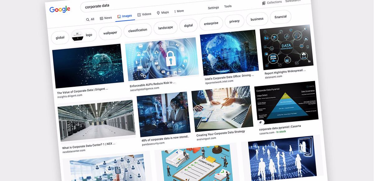 特定の単語やフレーズが英語圏でどういうイメージで捉えられているかを知る簡便な手段としてGoogleの英語版で画像(image)検索する方法がありますが、これで「Corporate Data」と検索して最初に出てきた結果が上のページ画像です。ご覧のように「デジタルデータ」や「データベース」を思わせるものがほとんどで、日本でいう「会社概要」と結びつくような画像はほぼ出てきません。一般に、英語圏で「Corporate Data」というと、会社が保有する各種の膨大なデータが連想されることが多いのです。