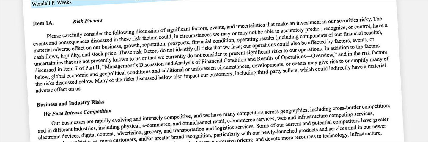 アマゾンのアニュアルレポート(Form 10-K)より。小見出しに特に番号は振られていません。
