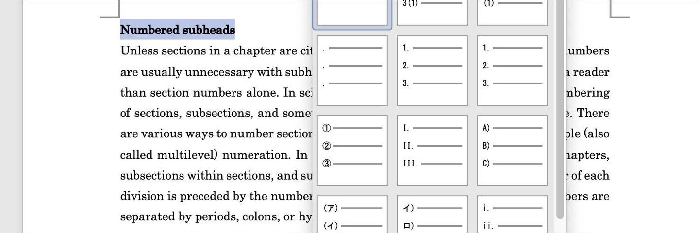 早速、アメリカの代表的な編集スタイルガイド『シカゴ・マニュアル・オブ・スタイル』を改めて確認してみました。すると、「Numbered subheads」(番号付き小見出し)という項目があり、そこに次のように記載されていました。