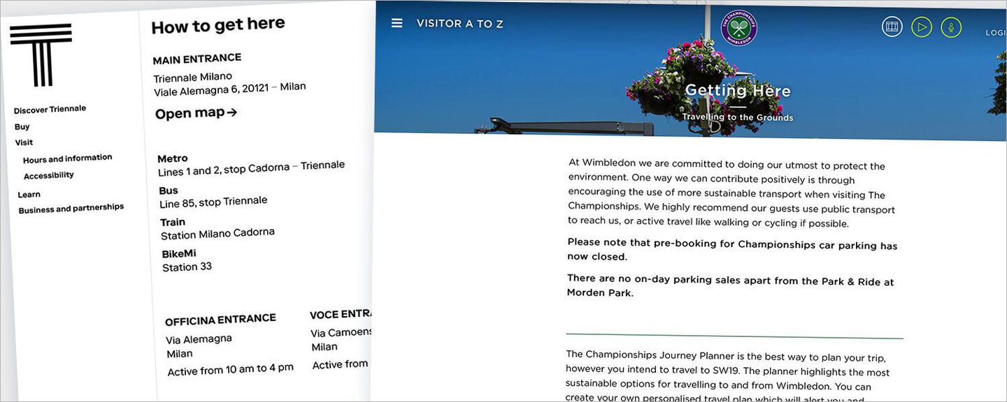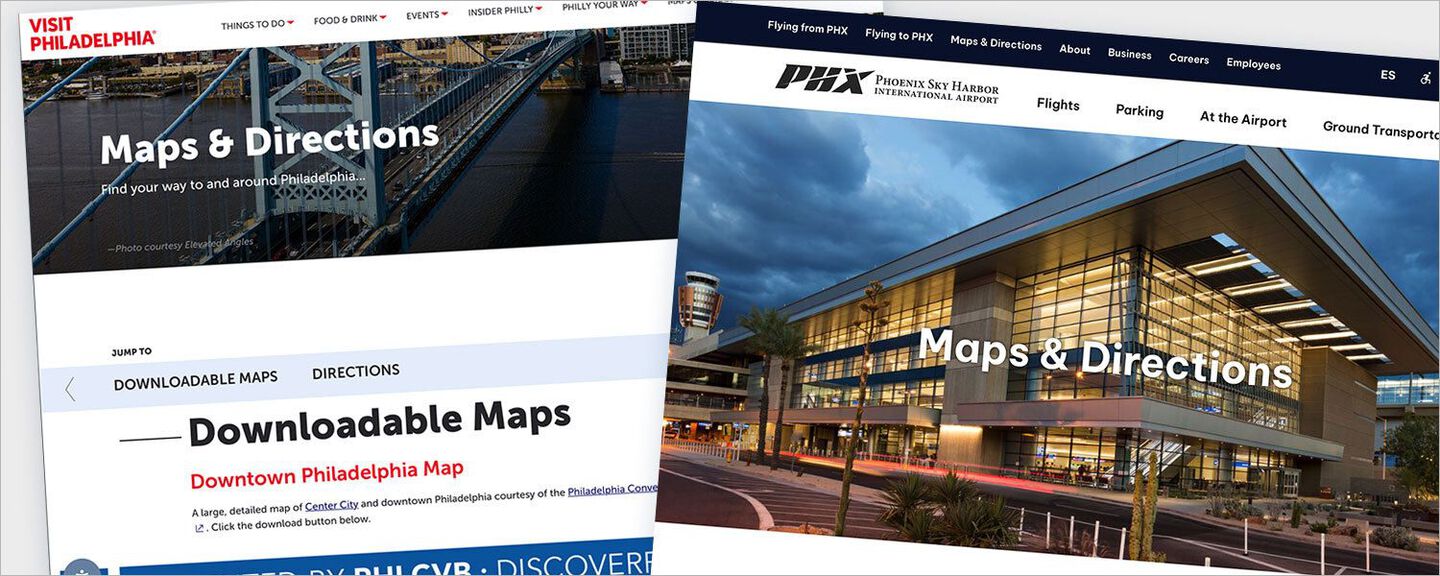 セントラルパークの管理団体がこういった地図を「access map」と呼んでいることを考えると、日本の英語サイトによく見られる「access map」も、バリアフリーの観点で作成された地図と勘違いされてしまうかもしれません。日本で「アクセスマップ」と呼んでいる、「行き方」を示す地図を掲載しているコンテンツの表題は、海外では「Map(s) and Directions」などとするのが一般的です。