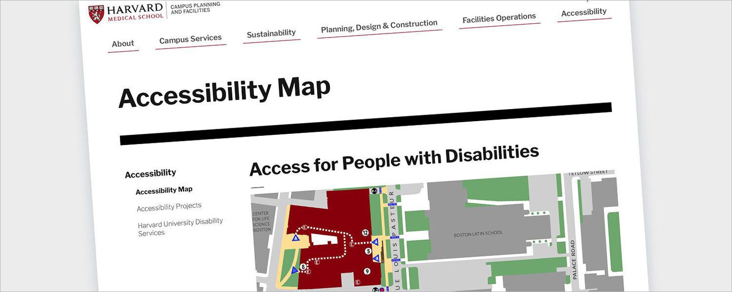 ここで言っている「access」とは「近づきやすさ=移動のしやすさ」のことで、正確には「accessibility」と言うべきでしょう。実際、「accessibility map」という下記のような地図を最近よく見かけるようになってきました。これは、車椅子利用者などを対象に、物理的なバリア(移動を妨げるもの)のあるなしを示す地図です。