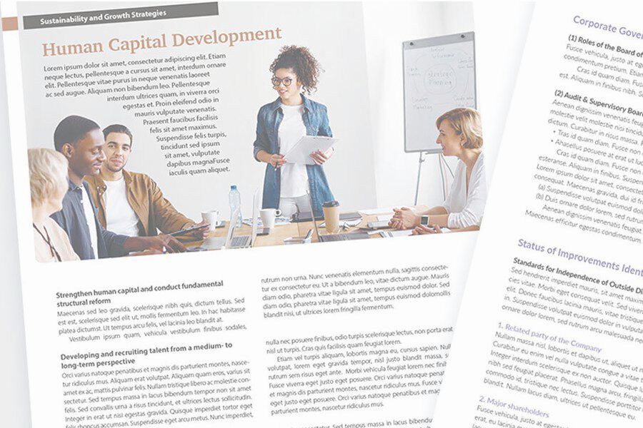 以上、今回は、デザイナー/レイアウターの視点で、統合報告書をレイアウトする際の「落とし穴」と、それを回避する具体例を紹介しました。ただ、上でも述べた通り、そうした「読みにくさ」の大半は、原稿を用意する編集者側の問題です。そして、この問題は、統合報告書の存在意義にも関わってくるものです。
