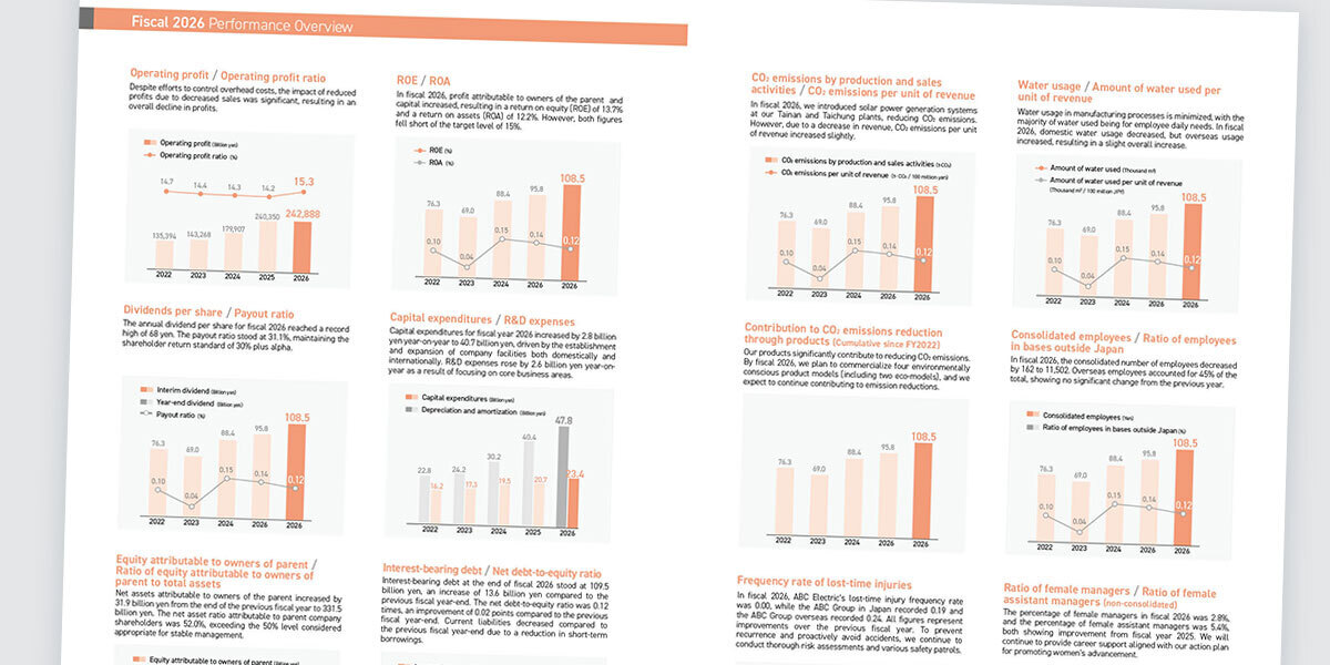 上の例のようなページ構成要素の場合、デザイナーだけでできることは限られています。グラフの数値も判読できなければならないし、業績の要因を示す説明文も重要です。上の例では、この説明文がまるで「注」のような扱いになっています。このような扱いでは、読者の目がそこに惹きつけられることはまずないでしょう。ただ、こうした業績説明文では、グラフを見ればわかる内容を文字に起こしただけというケースがままあります。本当にその「説明文」は必要なのか? この業績ハイライト・ページで一番見せたいものは何なのか?——そうした編集者の視点が本来は必要です。ここに説明文を入れなくても、同様の内容がCFOによる業績説明など、他のページで触れられているかも知れません。そうした場合、このページはグラフだけで見せるページにしても良いでしょう。もし、ここで文字情報を見せることが重要なのであれば、そちらを「主」にして、読者を「読む気」にさせるような編集・レイアウトを意識した方が良いでしょう。下の例はそうした視点で編集・デザインしたものです。