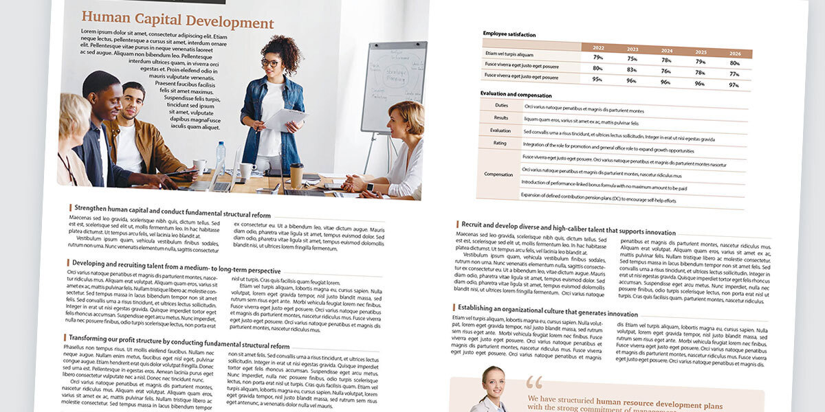 デザインクラフトでは、英文アニュアルレポート/統合報告書、英文パンフレット/ブロシュアのデザインのほか、和文から英文への差し替えレイアウトなどのご相談も承っております。企画からライティング、翻訳、デザイン〜DTPまで、ワンストップでの対応も可能です。詳細をお知りになりたい方は、Contactよりお気軽にお問い合わせください。