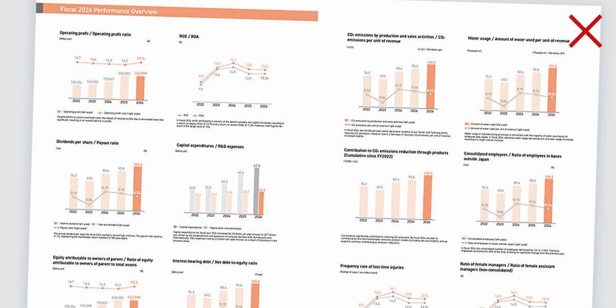 以上、今回は、デザイナー/レイアウターの視点で、統合報告書をレイアウトする際の「落とし穴」と、それを回避する具体例を紹介しました。ただ、上でも述べた通り、そうした「読みにくさ」の大半は、原稿を用意する編集者側の問題です。そして、この問題は、統合報告書の存在意義にも関わってくるものです。
